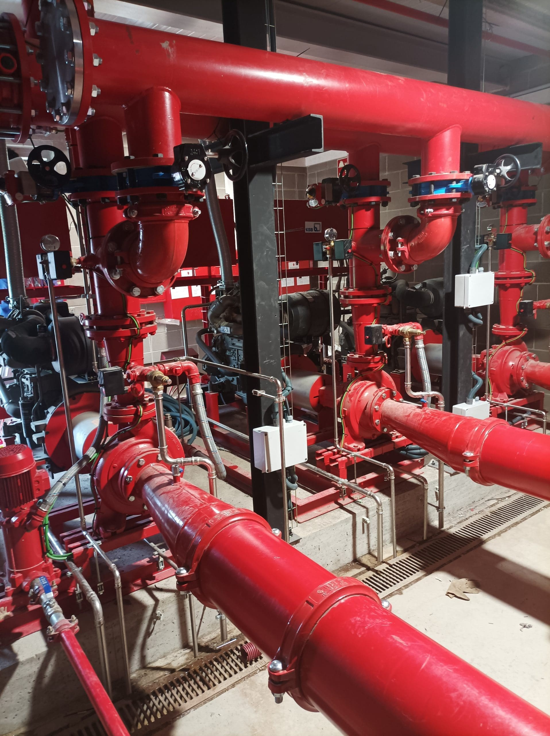 Se componen de una bomba jockey mantenedora de presión y unas bombas principales y secundarias que actuarán en caso de funcionamiento de los sistemas de extinción por agua. El número de bombas principales y secundarias puede variar según el sistema a abastecer y en cuanto a su accionamiento existen las bombas por motor eléctrico o por motor diésel.